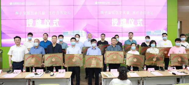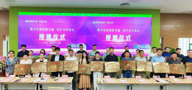 隨后尹強院長與各機構代表完成合作簽約儀式,李武平副院長、張斌副院長為參會的各家醫(yī)療機構授牌并合影留念。