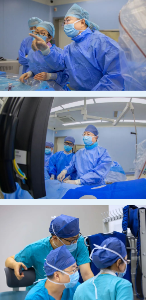 打通心路,解開心結(jié)。高風(fēng)險、高難度的冠心病手術(shù)正是李偉杰擅長的領(lǐng)域。正向?qū)Ыz不能通過閉塞的血管,那就采取逆向開通血管,推送逆向?qū)Ыz到血管真腔,正向?qū)Ыz“接應(yīng)”,交換為超長導(dǎo)絲建立軌道,沿超長導(dǎo)絲軌道將帶有支架的球囊穿行在心臟的江河湖海,抵達(dá)目的地——右冠遠(yuǎn)端狹窄的血管段,充液后的球囊擴(kuò)張撐開狹窄的血管,隨后收縮球囊使支架留在血管內(nèi),第一枚支架放置完畢。因為又粗又大的右冠狀動脈全程彌漫狹窄病變,由遠(yuǎn)端向近段一次植入支架,隨著最后一枚支架釋放,球囊撤出,王先生的血流瞬間通暢,冠狀動脈造影術(shù) 經(jīng)皮冠狀動脈內(nèi)支架置入術(shù)很成功。