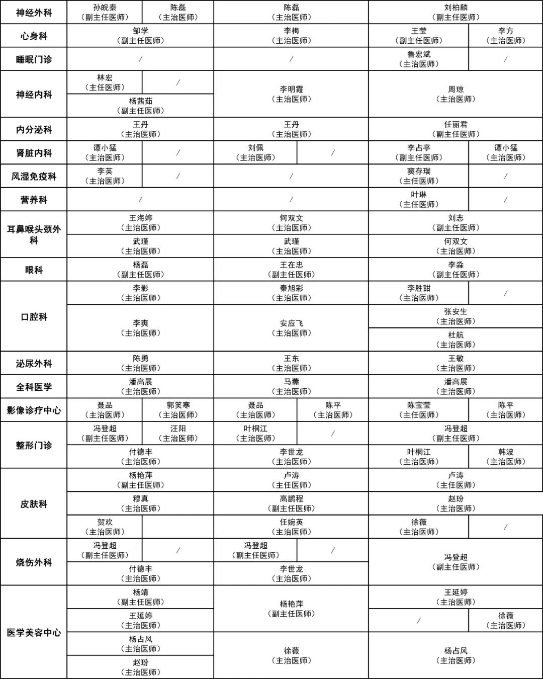 中秋節(jié)門診醫(yī)師出診信息