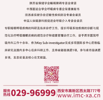 歡迎垂詢西安國際醫(yī)學中心醫(yī)院胸科醫(yī)院睡眠呼吸障礙診療中心:029-68302616。