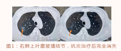 肺內(nèi)的磨玻璃結(jié)節(jié)可以是腫瘤,也有可能是肺部的急、慢性炎癥、肺結(jié)核、肺內(nèi)淋巴結(jié)、慢性肉芽腫性炎,甚至可以是肺內(nèi)的出血灶等。因此,發(fā)現(xiàn)肺部有磨玻璃結(jié)節(jié)不一定都是得了肺癌,炎癥或其它良性病變的可能性也很大??紤]良性病變的結(jié)節(jié)一般只需要定期隨訪和觀察即可;懷疑炎癥時,可以考慮抗炎治療后復(fù)查CT(如圖1:男性患者,體檢發(fā)現(xiàn)右肺上葉磨玻璃結(jié)節(jié),我們考慮炎癥可能,經(jīng)積極抗感染治療,3個月后復(fù)查CT磨玻璃結(jié)節(jié)完全消失)。對于一些確實懷疑有早期癌變可能的磨玻璃結(jié)節(jié)(包括:純磨玻璃結(jié)節(jié)和有一定實性成分存在的混合磨玻璃結(jié)節(jié)),則需要根據(jù)結(jié)節(jié)大小、其內(nèi)實性成分的多少等綜合判斷,制定隨訪和手術(shù)策略。