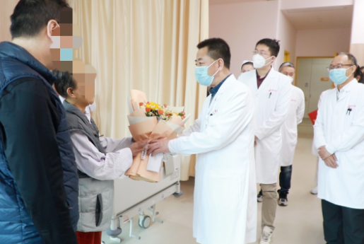 2023年1月31日,西安國際醫(yī)學(xué)中心醫(yī)院消化外科三病區(qū),劉延彤副院長、李國才主任、主管醫(yī)生許澤宇以及科室醫(yī)護(hù)團(tuán)隊(duì),共同為當(dāng)日出院的李虹(化名)送上鮮花,向他們送上最誠摯的祝福。
