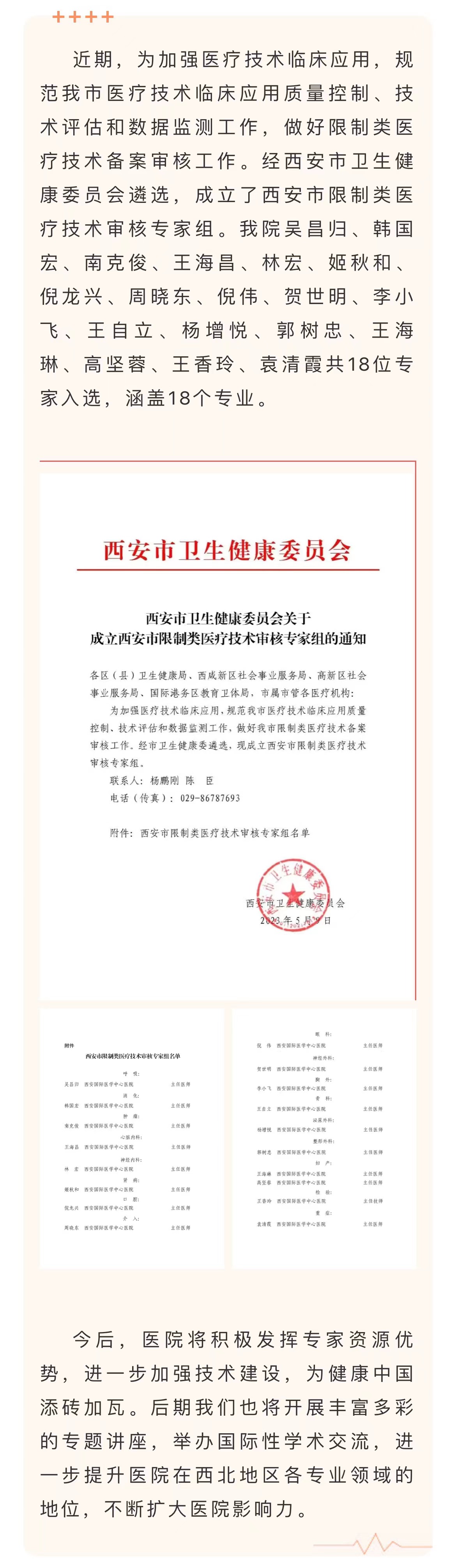 我院18位專(zhuān)家被納入西安市限制類(lèi)醫(yī)療技術(shù)審核專(zhuān)家組