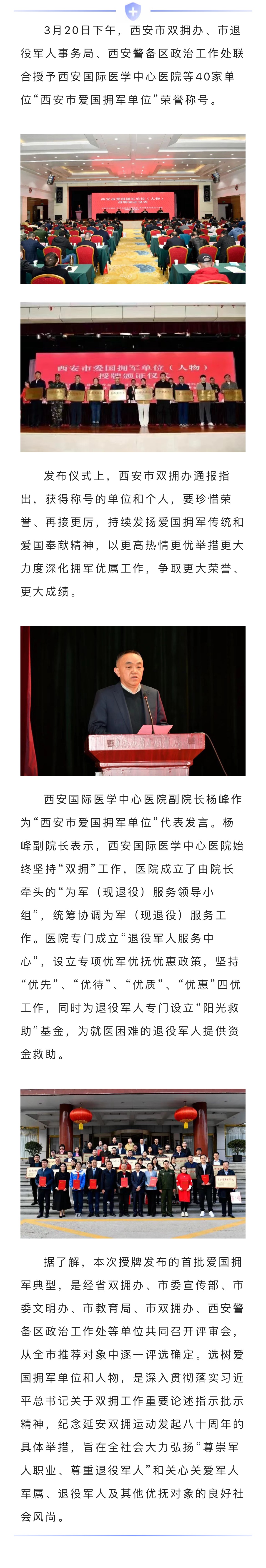我院榮獲“西安市愛國(guó)擁軍單位”稱號(hào)
