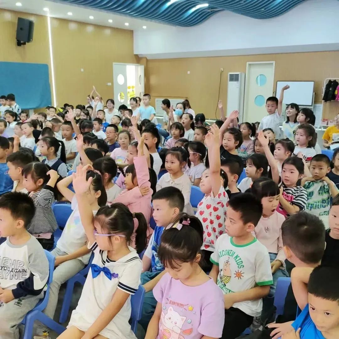 孩子們?cè)谂_(tái)下認(rèn)真聽講,舉手發(fā)言,在輕松愉悅的氛圍中懂得怎樣愛牙護(hù)牙。