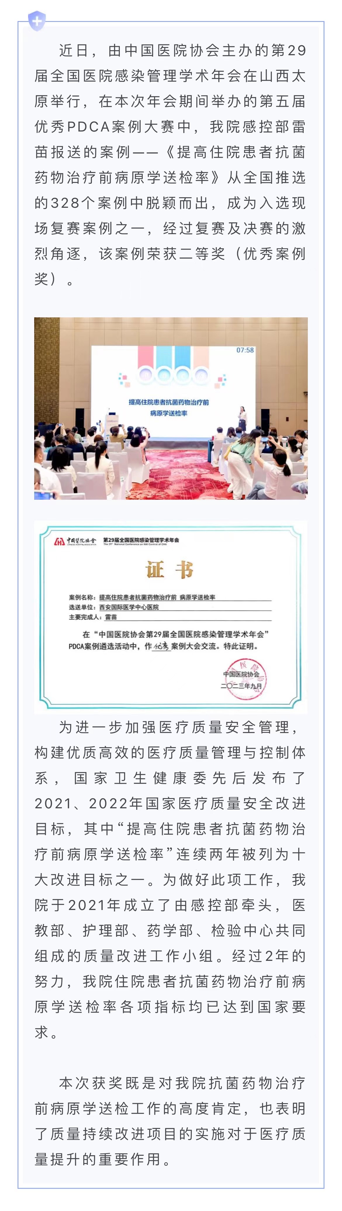 我院榮獲全國醫(yī)院感染管理學(xué)術(shù)年會第五屆PDCA案例大賽二等獎