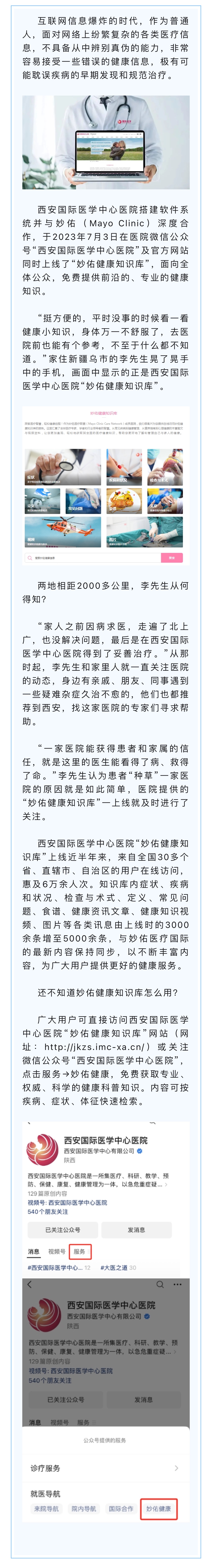 24小時掌中健康管家——西安國際醫(yī)學(xué)中心醫(yī)院“妙佑健康知識庫”