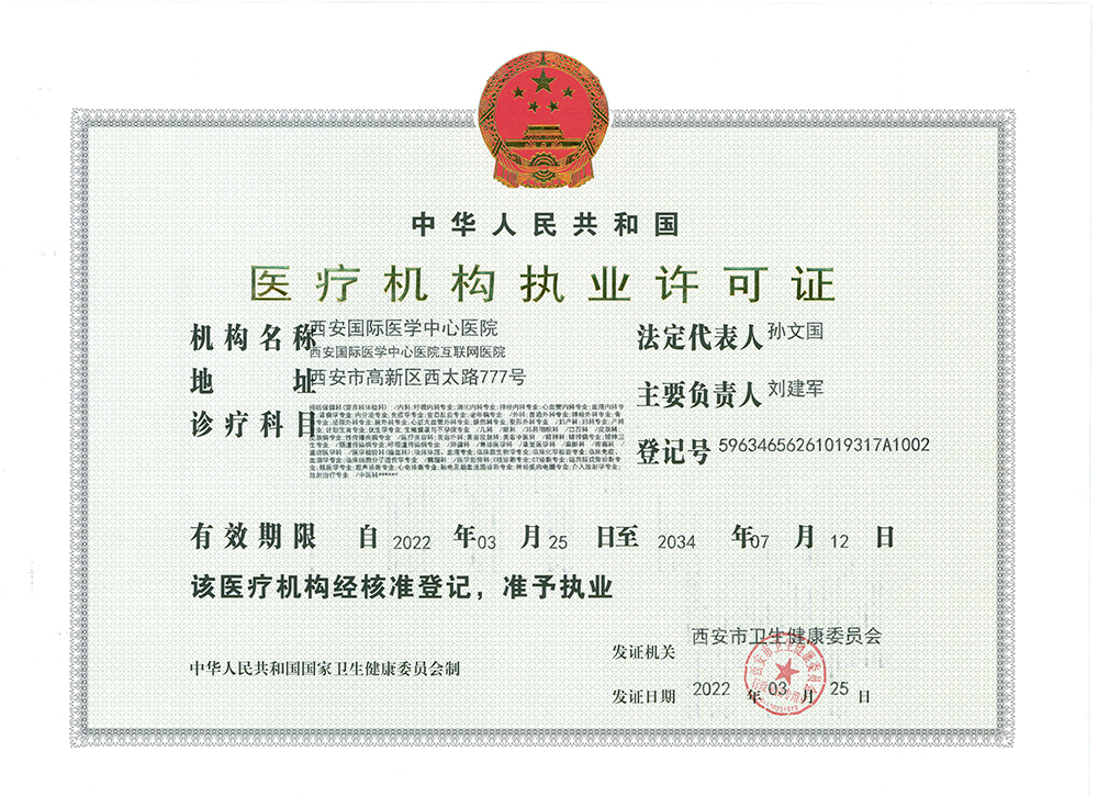 西安國際醫(yī)學中心醫(yī)院執(zhí)業(yè)許可證