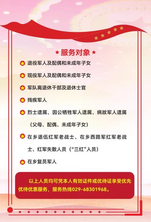 作為“西安市愛(ài)國(guó)擁軍單位”,西安國(guó)際醫(yī)學(xué)中心醫(yī)院于2022年6月21日成立了退役軍人服務(wù)中心,始終響應(yīng)國(guó)家針對(duì)軍人依法優(yōu)先的相關(guān)政策,推出“優(yōu)先、優(yōu)待、優(yōu)質(zhì)、優(yōu)惠”的“四優(yōu)”政策,對(duì)退役軍人等優(yōu)撫對(duì)象,提供便捷就醫(yī)。