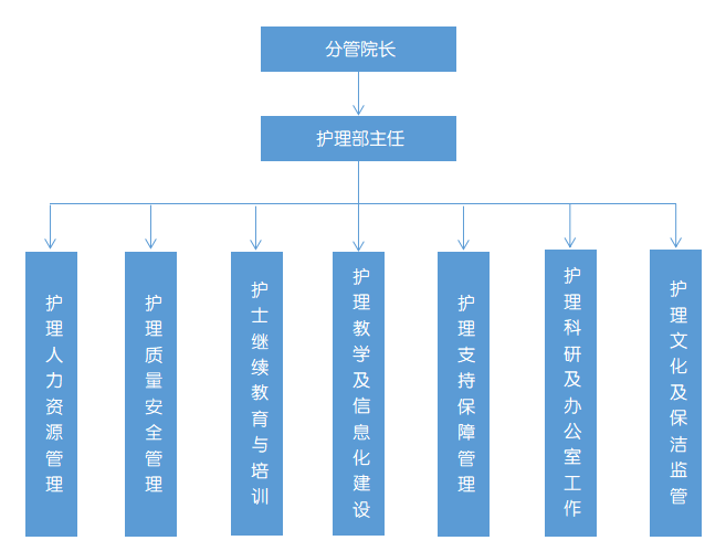 實(shí)行在分管院長(zhǎng)領(lǐng)導(dǎo)下的“護(hù)理部主任-總護(hù)士長(zhǎng)-護(hù)士長(zhǎng)”三級(jí)垂直管理體系,并設(shè)立了護(hù)理人力資源管理、護(hù)理質(zhì)量與安全管理、護(hù)理培訓(xùn)與教學(xué)、護(hù)理科研與信息管理等組織??茖W(xué)高效的組織管理體系為保證護(hù)理質(zhì)量、培養(yǎng)優(yōu)秀護(hù)理人才、促進(jìn)??铺厣l(fā)展、提升科研水平奠定堅(jiān)實(shí)基礎(chǔ)。